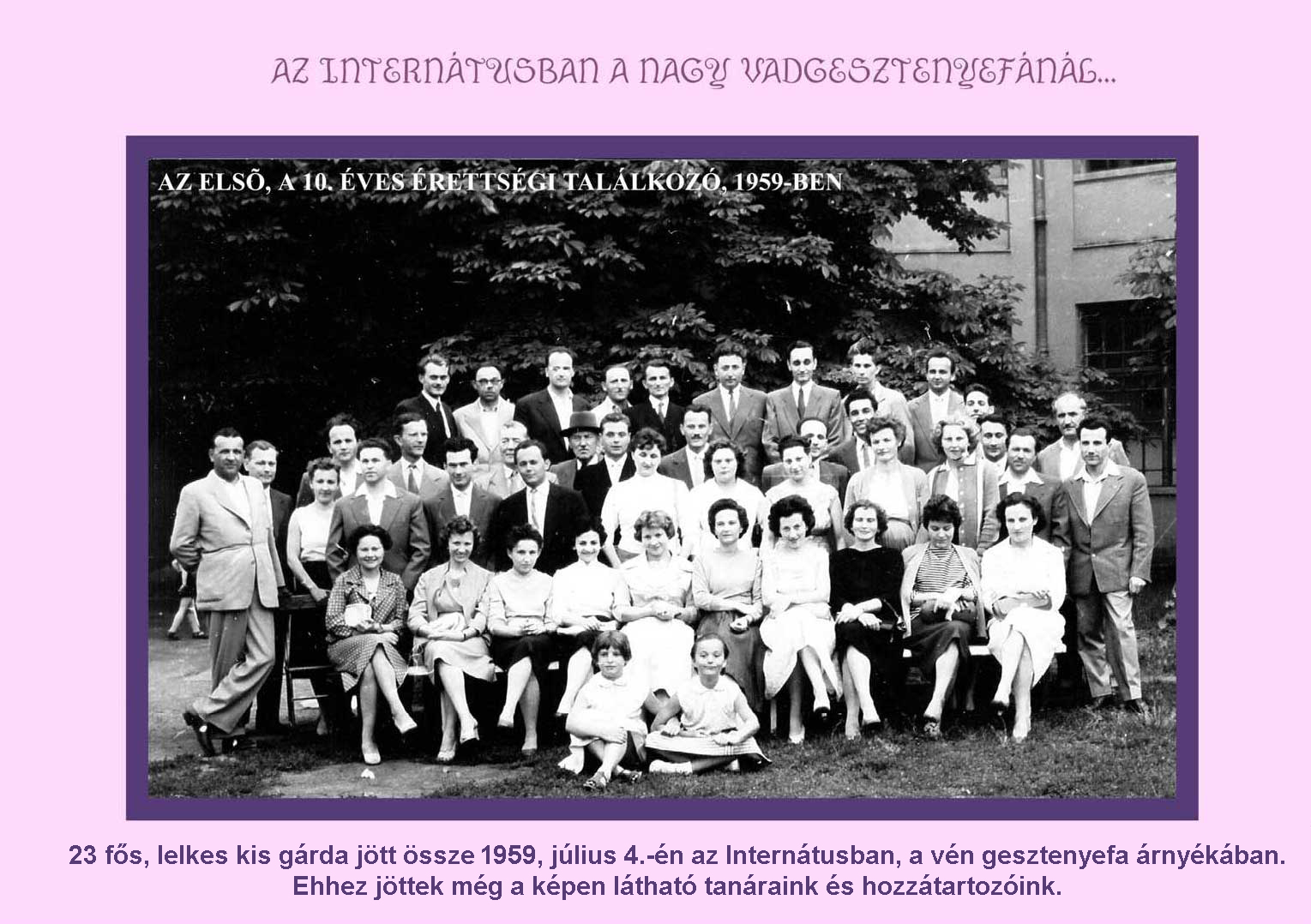 Az osztályból megjelent 23 fő: Ács Jolán Barcsay László Benkő Árpád Bozóki György Bugyik Margit Erdélyi Kálmán Gulyás László Juhász Béla Kajó Péter Lévay Pál Máté Endre Nagy Gy. Teréz Rázsó Elek Szabó Magda Szatmári Sándor Tóth Károly Ujfalusy Olga Vadas Albert Varga Katalin Á. Varga Miklós Wagner Sándor